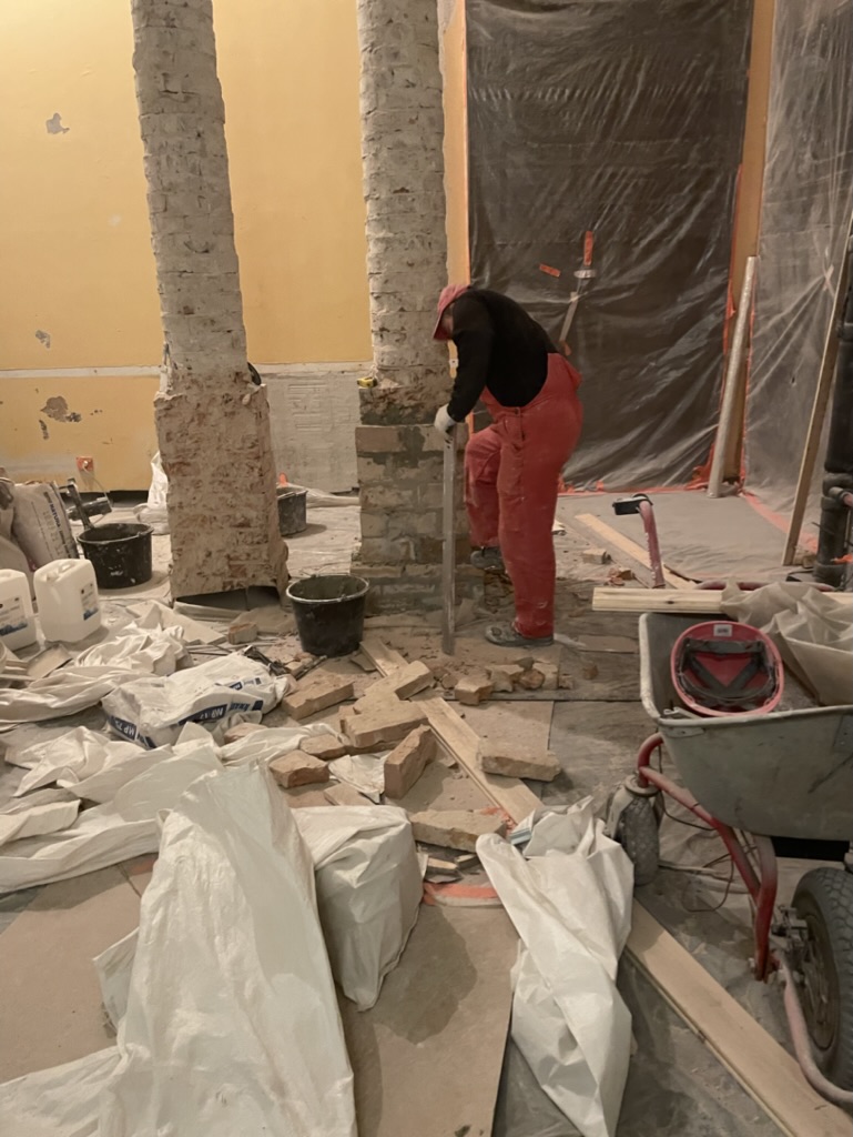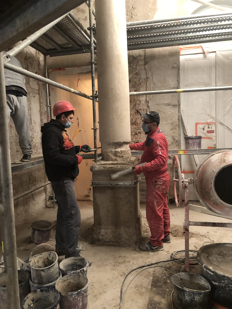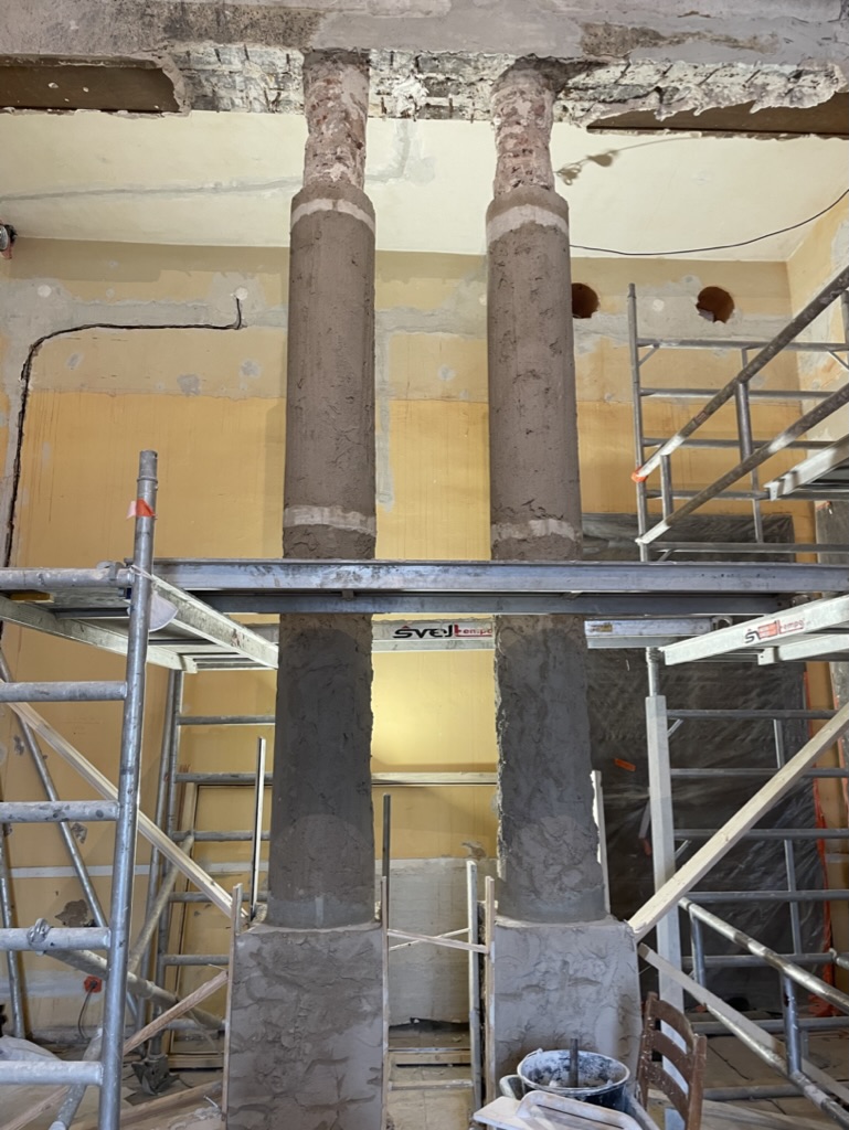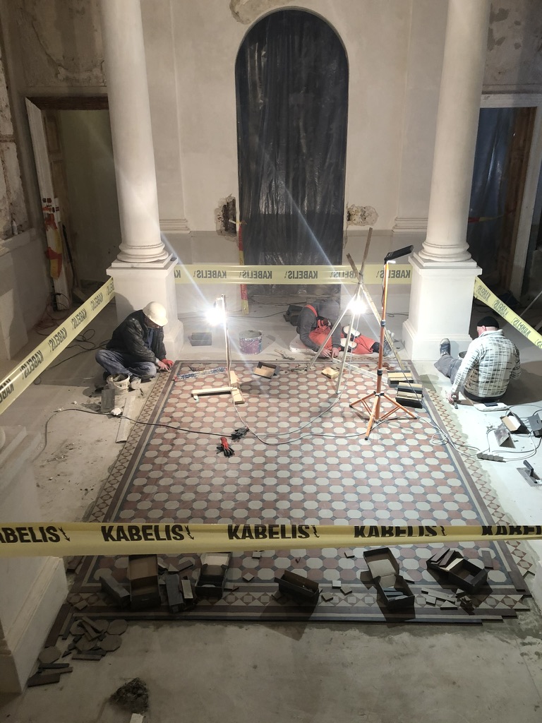 Restauruojama 1.06, 1.14, 1.20, 1.21 ir su jomis susijusių pataplų sienos ir grindys bei kiti tvarkybos darbai
