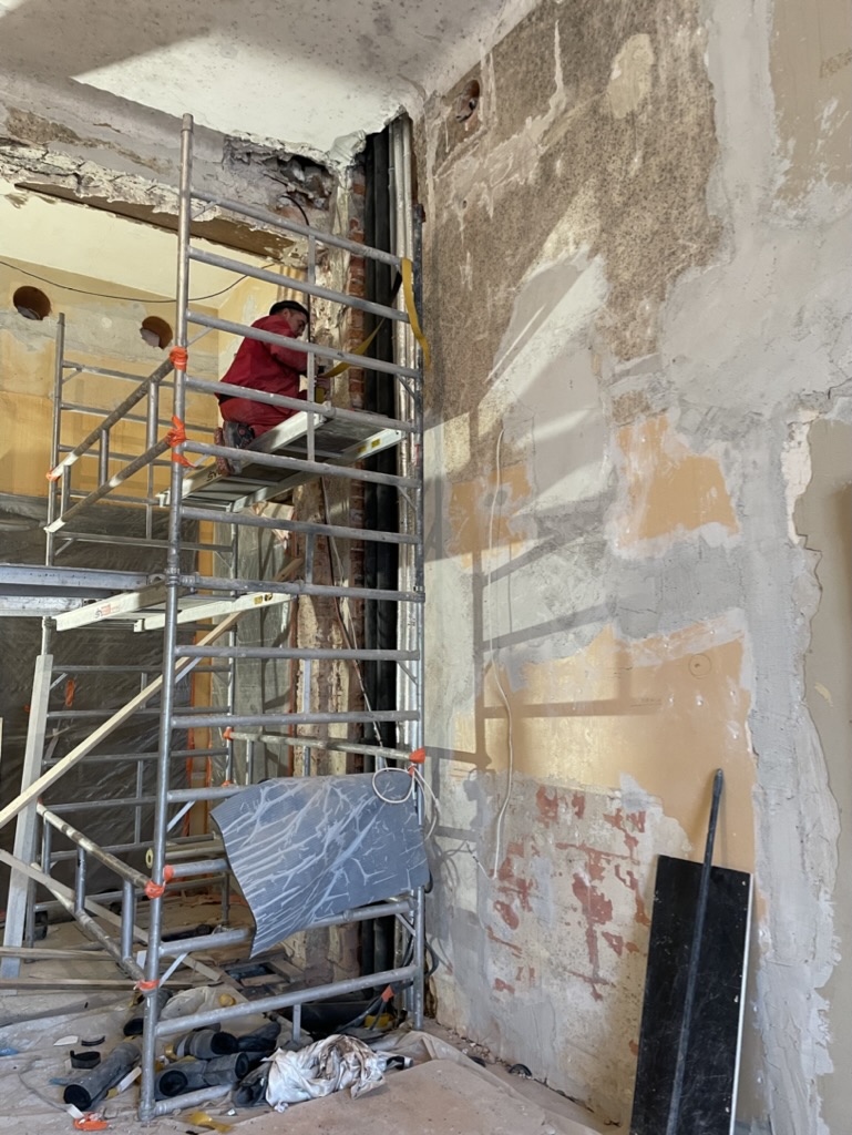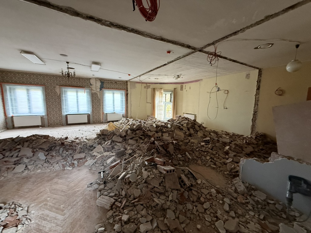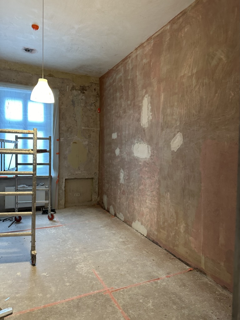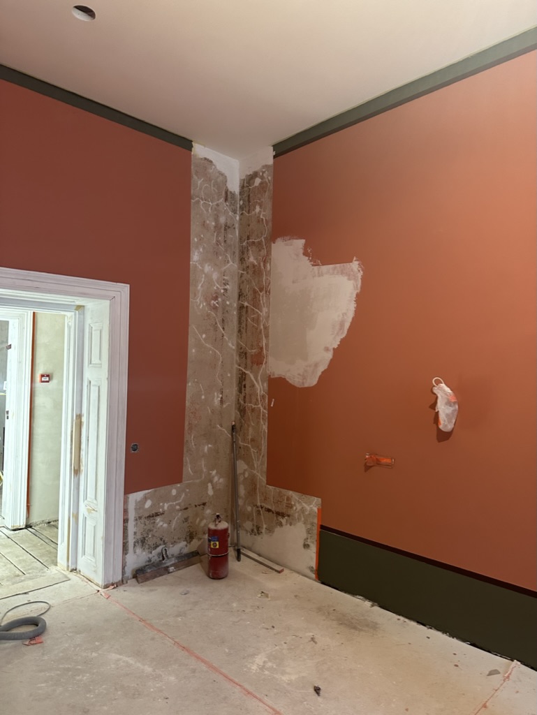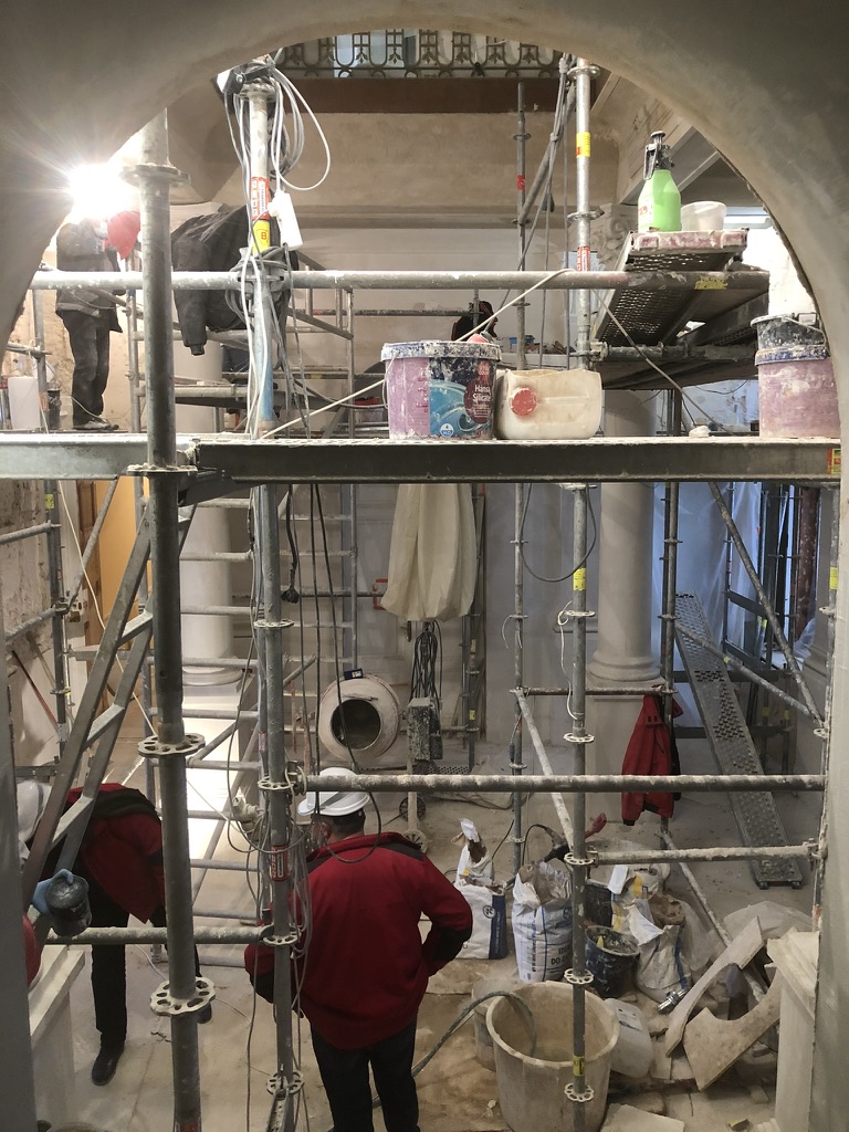 Restauruojama 1.06, 1.14, 1.20, 1.21 ir su jomis susijusių pataplų sienos ir grindys bei kiti tvarkybos darbai