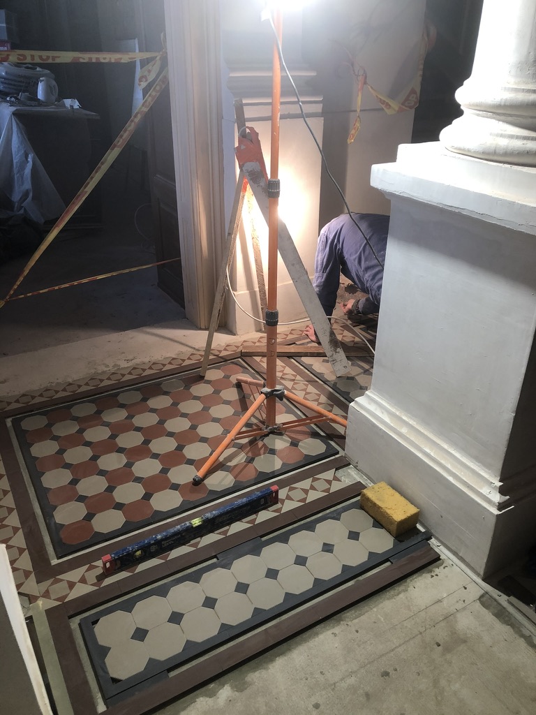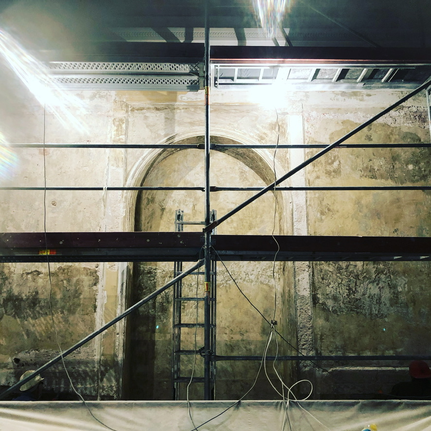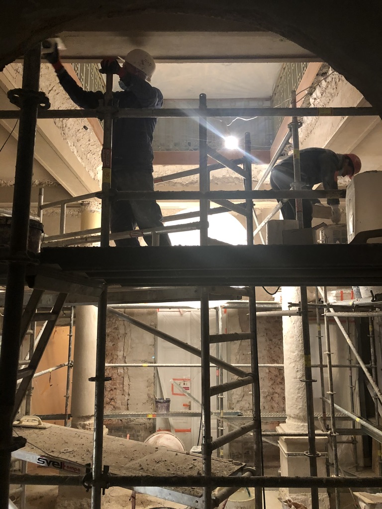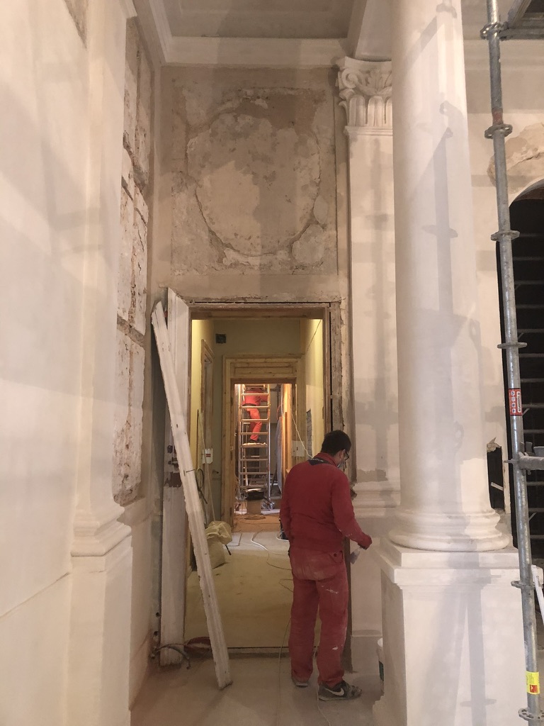 Atlikta holo (vestibiulio) lubų skliauto atrastos tapybos (darbų metu įtrauktos į paveldo objekto vertingąsias savybes) retušas ir restauravimas