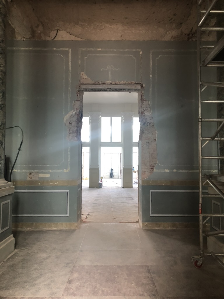 Pagrindinio Trakų Vokės dvaro rūmų holo tvarkybos darbai, dekoro atkūrimas