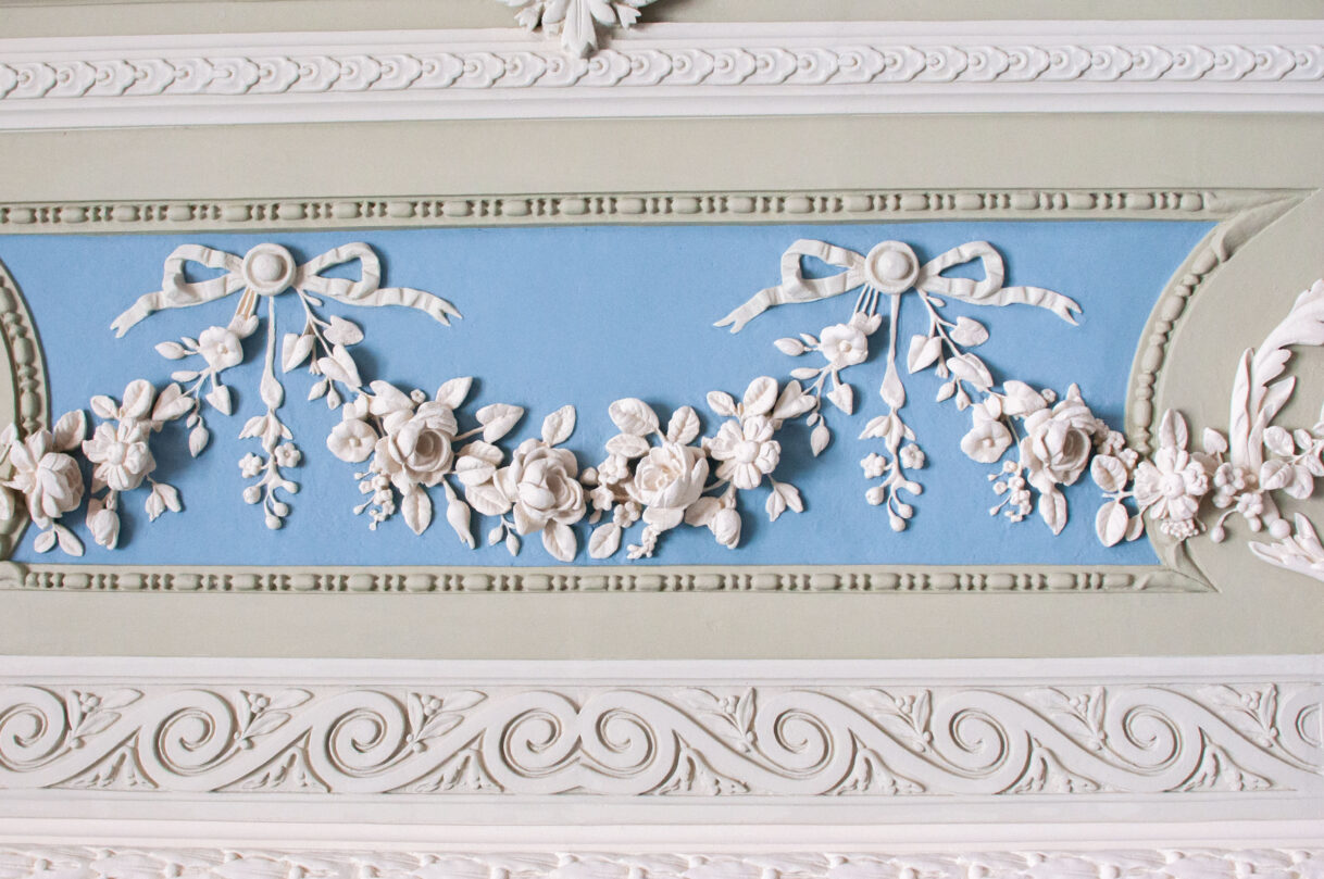 Restauruojama autentiškas lubų lipdybos dekoras patalpose 1.06, 1.14, 1.20, 1.21