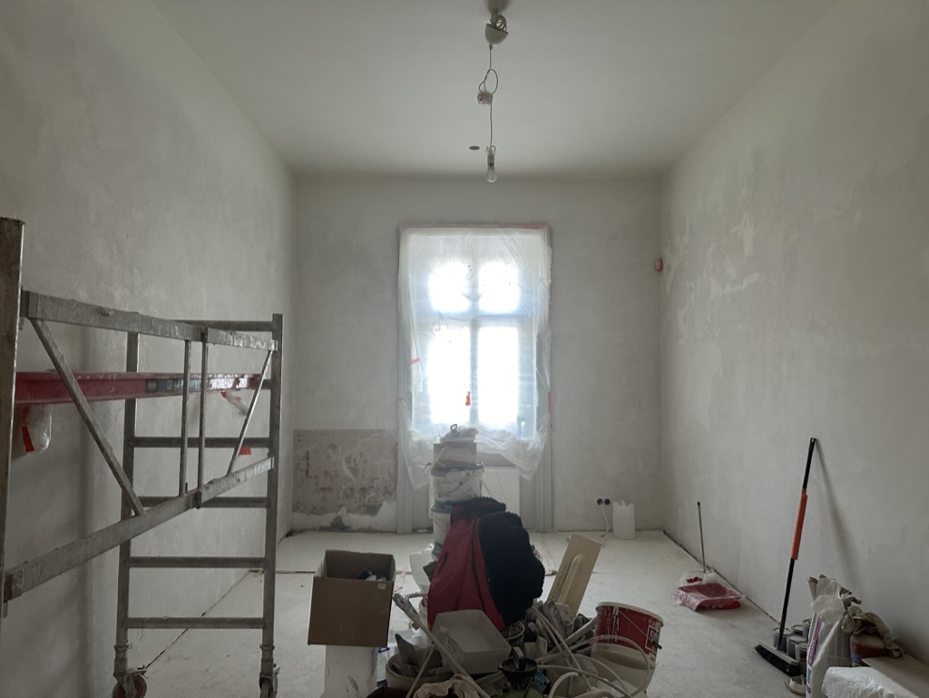 Atlikta antrojo aukšto kairiojo fligelio keturių kambarių ir juos jungiančios laiptinės tvarkybos darbai.